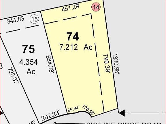 Nicely wooded 7 plus acre lot located at the end of Skyline Ridge Road. Possible views to the northeast. Older perc, private road - dues $700.00 per year. Survey, covenants and perc test can be viewed in documents.