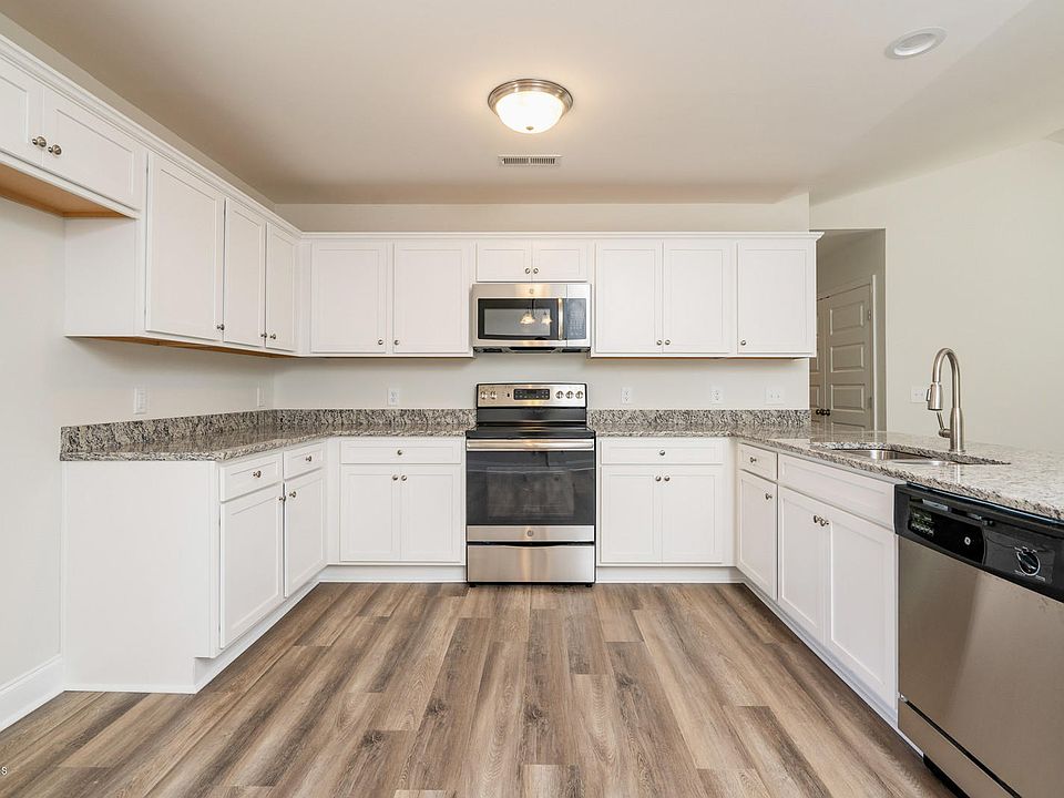 From the moment you pull up in front of this presale home and see its darling curb appeal with a large rocking chair front porch, you will feel like this is HOME! As you enter, you will quickly see the Builder has taken pride in building this home. The easily maintainable LVT flooring is in the kitchen, living room, and hallway. This open floorplan offers a vaulted ceiling, and allows for an abundance of natural lighting. This bright kitchen offers granite countertops to nestle around and share your day with family members, where you can start making memories. The spacious master suite offers a vaulted ceiling, as well as the latest trend of brushed cultured marble, and square basins in the baths. After dinner, relax in the privacy of your backyard, listening to the birds chirp. See add'