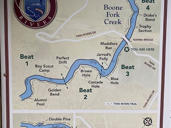 This gorgeous 1.74 acre lot in prestigious Twin Rivers is your answer to a quality building site in the high country. Perched between the Watauga River and the Boone Fork it is away from traffic noise but convenient to everything you want to do in the mountains whether Boone, Blowing Rock or Banner Elk. Most of all, it affords you exclusive access to some of the finest trout fishing waters in the world and it's walking distance from your home. Sequestered behind ornate metal filagreed gates you'll enjoy the best of high country tranquility in secure serenity. When the rest of the world looks for you, they'll find you've "gone fishin'." Please see video of the exotic Boone Fork trout fishing mecca! (Please note: photos of Boone Fork are from the bridge near the fishing beats. Property does not include river frontage but does ensure exclusive trout fishing rights as community member. Photos of views are from a drone directly above the lot and do not reflect actual views from the lot at ground level.)