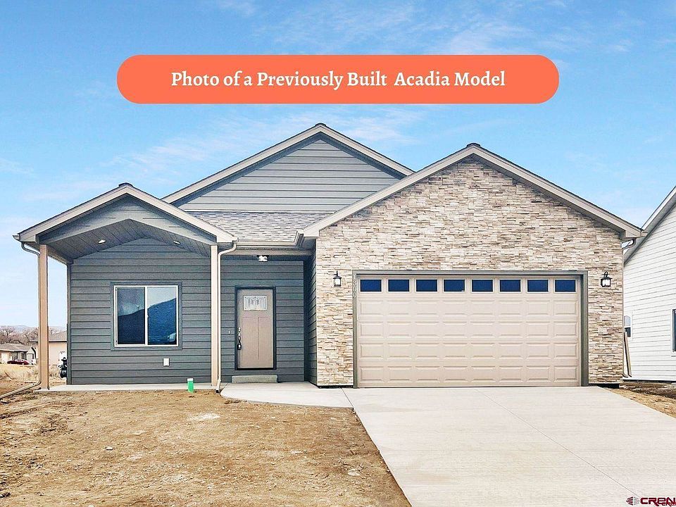 The Acadia - 1 of 13 models Ridgeline Homes can build you in Woods Crossing on selected lots in Blocks 7 & 8! Lots on South side of Kestrel Loop (Block 8) are adjacent to greenbelt and have wonderful San Juan and surrounding mountain views. Buyer can choose cabinet color, flooring, tile, exterior siding and stone from a selection available from Builder. Standard features include all appliances – stainless in kitchen…buyers choice of gas or electric range/oven, refrigerator, dishwasher and microwave, and washer and dryer. Maple stained soft close doors and drawers with 36†wall cabinets in kitchen and 30†wall cabinets in laundry (when applicable), granite countertops in kitchen, baths and laundry (if countertop in laundry). Durable laminate flooring throughout with tile flooring in baths. 9ft ceilings throughout, vaulted ceiling in living room and master bedroom. Hand troweled drywall texture, bullnose corners. Your choice of oil rubbed bronze or nickel electric and plumbing fixtures, lever door handles, contemporary cabinet pulls and knobs and kitchen faucet. Comfort height vanities. Bright LED lighting. Standard pre-finished lap siding (can be upgraded to stucco), accented by manufactured stone on front elevation. 30-year architectural shingles, seemless gutters with foldable extensions. Unfinished garage with 8 insulated steel garage door with openers and keypad entry. Vinyl windows, select models with rough-cut and stained beams. Built on crawlspace with engineered foundation, R-19 insulation in the walls, R-38 insulation in attic, insulated garage walls, 95% minimum high efficiency gas furnace, 95% minimum high efficiency water heater, 50-gallon hot water heater. Each home professionally managed throughout the entire building process to ensure quality. 1-year structural warranty. Select upgrades can be added. Construction time approximately 3-4 months. SELLER WILL ALSO CREDIT $7000 TOWARDS BUYER CLOSING COSTS AND/OR INTEREST RATE BUY DOWN IF BUYER CLOSES USING ONE OF SELLER'S PREFERRED LENDERS, ACADEMY MORTGAGE MONTROSE, SYNERGY ONE LENDING MONTROSE OR GENEVA FINANCIAL MONTROSE. Make a Ridgeline Home your next home!