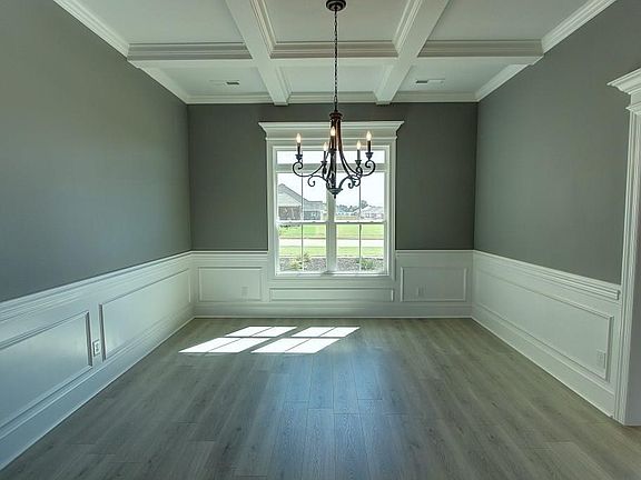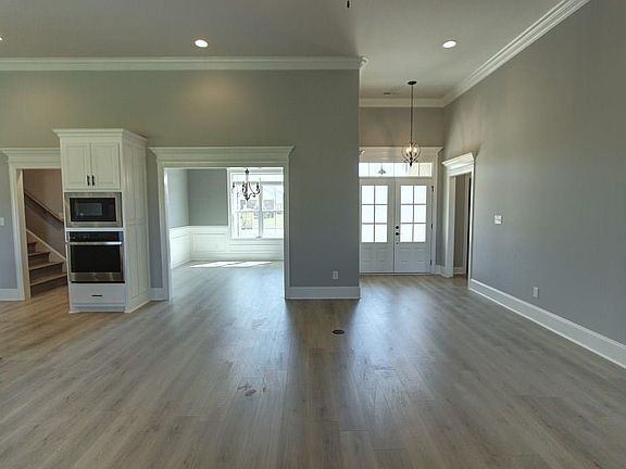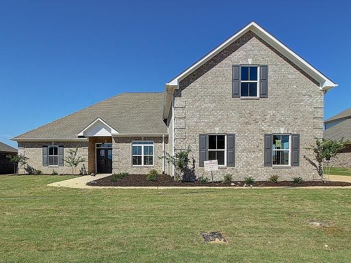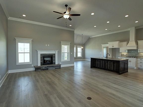All brick Glenmont A is an open plan with 3 car side entry garage and is backed by a 2-10 home warranty.. Home has 4 bedrooms, 3.5 baths and a bonus room. Bonus room and one bedroom are upstairs with one bath. Home has wood plus flooring (Mohawk Revwood) in all living areas and bedrooms. Great Room features 12' ceiling, extensive trim, gas-log fireplace with upgraded treatment, wood plus flooring, floor outlet, recessed lights and ceiling fan. Dining room has 10' coffered ceiling, wood plus flooring and extensive trim including shadow box under chair rail. Home has guest half bath downstairs. Open Kitchen includes 12' ceiling, custom cabinetry with granite countertops, large 45-degree island with bar seating, stainless appliances (Gas Cooktop, Wall oven, Dishwasher, Wall Microwave), tile backsplash, wood plus flooring, recessed lighting, and corner pantry. Breakfast has 12' ceiling, wood plus flooring and extensive trim. Master bedroom has 11' double tray ceiling, recessed lighting, extensive trim, ceiling fan and huge walk-in closet. Master bath has 11' ceilings, glamour tub, corner tile shower with two shower heads and rimless door, separate toilet area and double vanity with granite. The home has hardwood stairs leading to the second story. Additional bedrooms have crown molding and ceiling fans as does the upstairs bonus room. The additional baths have tile flooring and granite counter tops. Downstairs is 9' ceilings. Laundry room has 9' ceilings, custom cabinets and tile