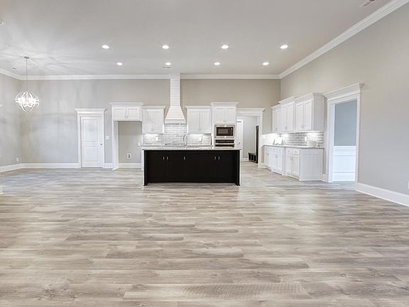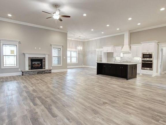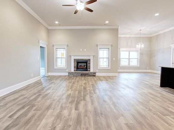 All brick Trenton Plan B is an open plan with a 3 car side entry garage backed by a 2-10 home warranty.. Home has 4 bedrooms, 3 baths and a sunroom. Home has wood plus flooring (Mohawk Revwood) in all living areas and bedrooms. Great Room features 12' ceiling, extensive trim, gas-log fireplace with upgraded fireplace treatment, wood plus flooring, floor outlet, recessed lights and ceiling fan. Dining room has 12' coffered ceiling, wood plus flooring, extensive trim including shadow box under chair rail. Open Kitchen has 12' ceilings in kitchen, custom cabinetry and granite countertops, large island with extra storage and countertop seating, stainless appliances including dishwasher, gas cooktop, wall oven and wall microwave, tile backsplash, wood plus flooring, recessed lighting, and huge walk-in pantry. Breakfast has 12' ceiling, wood plus flooring and extensive trim. Master bedroom has 11' double tray ceiling, extensive trim, wood plus flooring, recessed lighting and ceiling fan. Master bath has 11' ceilings, glamour tub, corner tile shower with tile bottom, two shower heads and rimless door, separate toilet area, double vanity with granite countertops and huge walk-in closet. Large sunroom has vaulted ceiling, wood plus floor and ceiling fan. The additional bedrooms have 9' ceilings, wood plus flooring, ceiling fans and crown molding. The additional baths have 9' ceilings, tile flooring and granite countertops. Laundry has 9' ceilings, custom cabinet and tile flooring. Hom