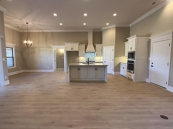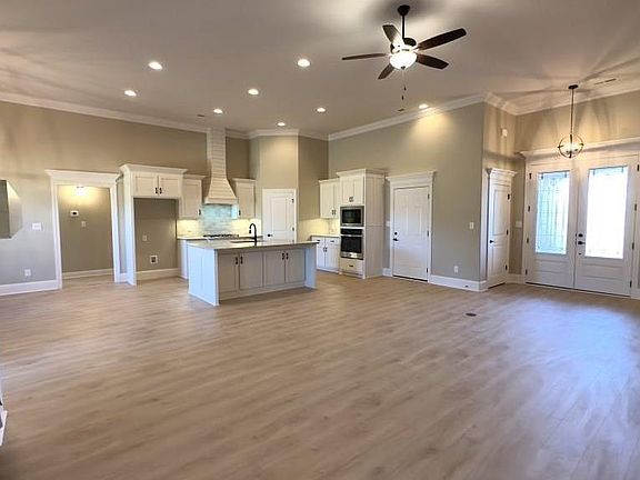All brick Edmonton Plan A is an open plan with a 3 car side entry garage backed by a 2-10 home warranty.. Home has 4 bedrooms, 3 baths and a sunroom. Home has wood plus flooring (Mohawk Revwood) in all living areas and bedrooms. Great Room features 12' ceiling, extensive trim, gas-log fireplace with upgraded fireplace treatment, wood plus flooring, floor outlet, recessed lights and ceiling fan. Open Kitchen has 12' ceilings in kitchen, custom cabinetry and granite countertops, large island with extra storage and countertop seating, stainless appliances including dishwasher, gas cooktop, wall oven and wall microwave, tile backsplash, wood plus flooring, recessed lighting, and walk-in pantry. Breakfast has 12' ceiling, wood plus flooring and extensive trim. Master bedroom has 11' double tray ceilings, wood plus flooring, recessed lighting, extensive trim and ceiling fan. Master bath has 11' ceilings, glamour tub, large tile shower with rimless shower door, separate toilet area, double vanity with granite counter tops and large walk-in closet. Sunroom has 12' ceiling, French doors to family room, wood plus flooring and ceiling fan. The additional bedrooms have 9' ceilings, ceiling fans, crown molding and wood plus flooring. The additional baths have 9' ceilings, tile flooring and granite counter tops. Laundry has 9' ceiling, custom cabinet, and tile flooring. Rear porch has ceiling fan. The home has a tankless water heater. Home includes fully sodded yard, gutters including pipi