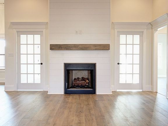 All brick Monticello Plan A is an open plan with a 3 car side entry garage backed by a 2-10 home warranty.. Home has 4 bedrooms, 3 baths and a Sunroom. Home has wood plus flooring (Mohawk Revwood) in all living areas and bedrooms. Great Room features 12' ceiling, extensive trim, gas-log fireplace with upgraded fireplace treatment, wood plus flooring, recessed lights and ceiling fan. Sunroom has 12-foot ceiling, French doors from family room, Wood Plus Flooring, and ceiling fan. Dining room has 10' coffered ceiling, wood plus flooring, extensive trim including shadow box under chair rail. Kitchen includes 12' ceiling, custom cabinetry and granite countertops, large island with extra storage and countertop seating, stainless appliances including dishwasher, gas range and microwave, tile backsplash, wood plus flooring, recessed lighting, and walk-in pantry. Breakfast has 12' ceiling, wood plus flooring and extensive trim. Master bedroom has 11' double tray ceiling, wood plus flooring, recessed lighting, extensive trim and ceiling fan. Master bath has 11' ceilings, glamour tub, large tile shower with rimless shower door, separate toilet area, double vanity with granite countertops and large walk-in closet. The additional bedrooms have 9' ceiling, ceiling fans and crown molding. The additional baths have 9' ceilings, tile flooring and granite countertops. Laundry has 9' ceiling, custom cabinet and tile flooring. Home has rear covered porch with ceiling fan. The home has a tankless