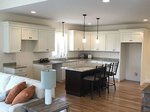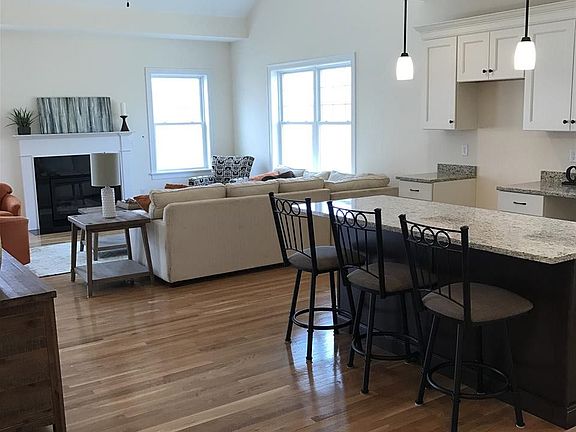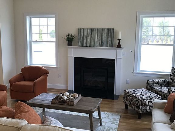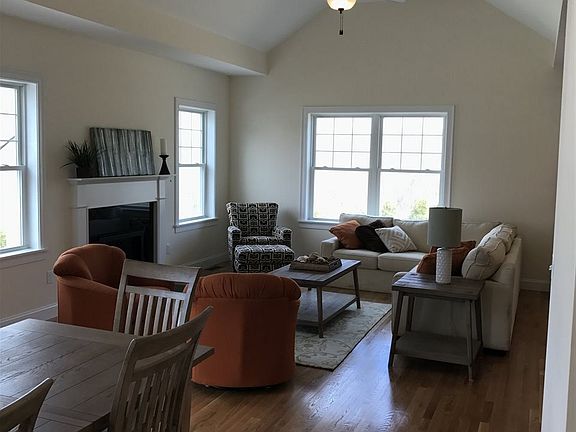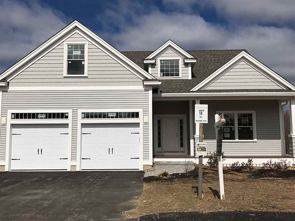 This home welcomes you inside with a lovely foyer looking directly up to the 2nd floor balcony. Enter the study with hardwood and crown molding, look out the windows to the maintenance free farmer’s porch and view of the apple trees and roses in the center of the cul-de-sac. Continue on the hand finished white oak flooring to an open concept kitchen and vaulted ceiling living area with granite surround gas fireplace. Close in 60 days or less and you still have time to customize your kitchen cabinets, granite counters and flooring. Sit in the dining area or vaulted ceiling sunroom with views of the driving range. Head outside to an oversized composite deck or from the walk-out basement into the landscaped yard. The 1st floor Master is located at the back with vaulted ceiling, transom window and tiled shower with granite seat. There is a 1st floor powder room with wainscoting and 1st floor laundry. Up the oak stairs are two additional large rooms, a full bath and balcony sitting area with a view of the foyer below. Use the large unfinished area for storage, gym, craft space, guest room or entertainment area. Stroll down the sidewalk to the clubhouse to grab a drink with friends at the bar, exercise in the full gym, or visit on the oversized deck. Don’t worry about shoveling, plowing, or landscaping any longer as Bramber Green is virtually a maintenance free community with low condo fees! Low taxes, and close proximity to beaches, downtown Portsmouth, and major highways!