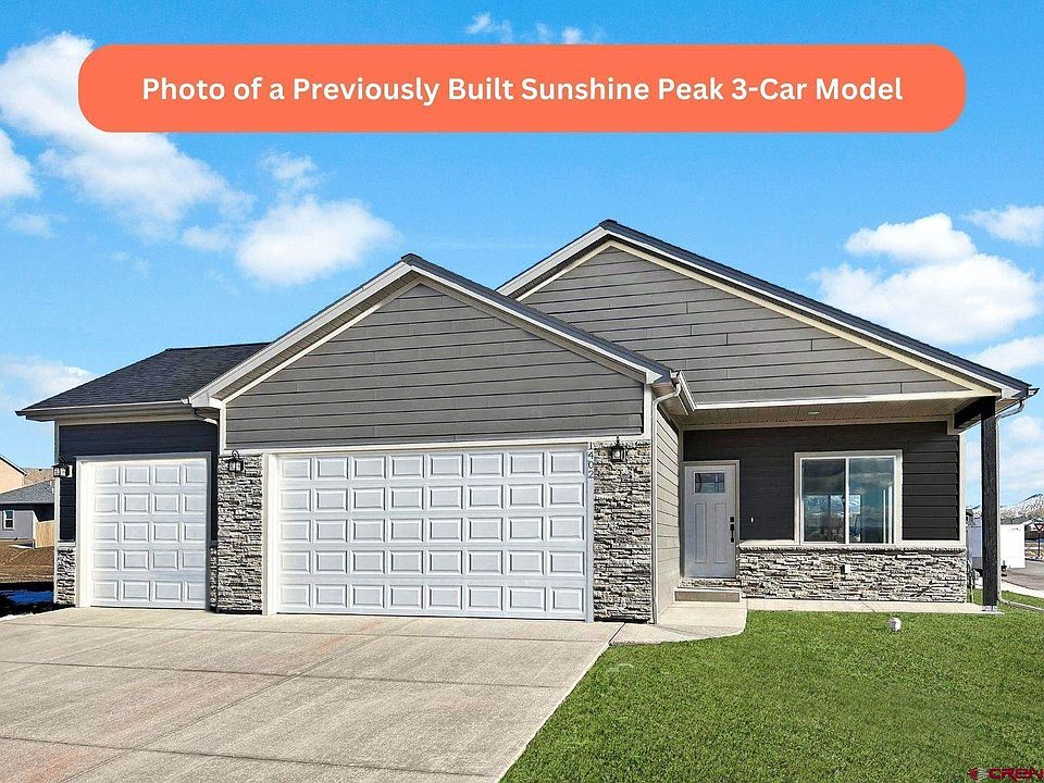 The Sunshine Peak with 3-Car Garage - 1 of 13 models Ridgeline Homes can build you in Bear Creek! Standard features include all appliances - stainless in kitchen...buyer's choice of gas or electric range/oven, refrigerator with ice and water in door, dishwasher and microwave, and washer and dryer. Maple stained soft close doors and drawers with 36" wall cabinets in kitchen and 30" wall cabinets in laundry (when applicable), granite counter tops in kitchen, baths and in laundry (if countertop in laundry). Durable laminate flooring throughout with tile flooring in baths. 9ft ceilings throughout, vaulted ceiling in living room and master bedroom on single-story models (when possible). Hand troweled drywall texture, bullnose corners. Your choice of oil rubbed bronze or nickel electric and plumbing fixtures, lever door handles, contemporary cabinet pulls and knobs and kitchen faucet. Comfort height vanities. Bright LED lighting. Standard pre-finished lap siding (can be upgraded to stucco), accented by manufactured stone on front elevation. 30-year architectural shingles, seemless gutters with foldable extensions. Unfinished garage with 8' insulated steel garage door with openers and keypad entry. Vinyl windows, select models with rough-cut and stained beams. Built on crawl space with engineered foundation, R-19 insulation in the walls, R-38 insulation in attic, insulated garage walls, 95% minimum high efficiency gas furnace, 95% minimum high efficiency water heater, 50-gallon hot water heater. Each home professionally managed throughout the entire building process to ensure quality. 1-year structural warranty. Select upgrades can be added. Construction time approximately 3-4 months. SELLER WILL ALSO CREDIT $7000 TOWARDS BUYER CLOSING COSTS AND/OR INTEREST RATE BUY DOWN IF BUYER CLOSES USING ONE OF SELLER'S PREFERRED LENDERS, ACADEMY MORTGAGE MONTROSE, SYNERGY ONE LENDING MONTROSE OR GENEVA FINANCIAL MONTROSE. Make a Ridgeline Home your next home!