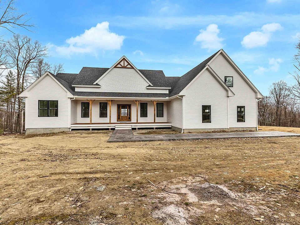 New construction situated on a 3.1 acre lot with spectacular views. The contractor is putting the finishing touches on this new 4 bedroom 3 bath home. The buyer still has time to select some interior finishes. The home has one floor living with a large rear deck that offers spectacular views of Mount Skatutakee and Thumb Mountain. The main living area is open concept with 10' high ceilings in the Kitchen, Dining, and Great Room areas. There are numerous expansion possibilities with interior access to an unfinished bonus room over the garage and a large walkout basement with extraordinarily high ceilings. The home is located on a quite private road. Some modifications have been made to the attached floor plan.