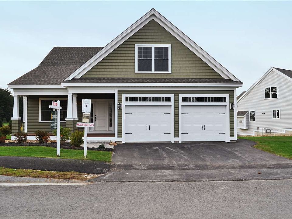 This home welcomes guests with professional landscaping, walkway, and granite steps up to a maintenance free farmer’s porch. Bright white kitchen with sparkling granite counters. Large pantry closet for storage. Sunny dining area with view of trees & roses in the quiet cul-de-sac. Dining room finished with bright bump out bay window, tray ceiling and crown molding. Open concept floor plan with hand finished white oak flooring flows from the kitchen to the living room with vaulted ceilings and comforting gas fireplace. Private composite deck facing the woods with view of driving range. 1st floor master suite is privately located and finished with vaulted ceilings, large walk in closet, tile bath with tile shower, large linen closet, and granite vanity. Large laundry room, with extra space for your folding counter/ironing board. Powder room with wainscoting conveniently located off the living area. Up the oak stairs are two large bedrooms with full bath, plenty of closet space. Large unfinished room over the garage is perfect storage space, or future gym, entertainment space, craft room. Stroll down the sidewalk to the clubhouse to grab a drink with friends at the bar, exercise in the full gym, or visit on the oversized deck. Don’t worry about shoveling, plowing, or landscaping any longer as Bramber Green is virtually a maintenance free community with low condo fees! Low taxes, and close proximity to beaches, downtown Portsmouth, and major highways!