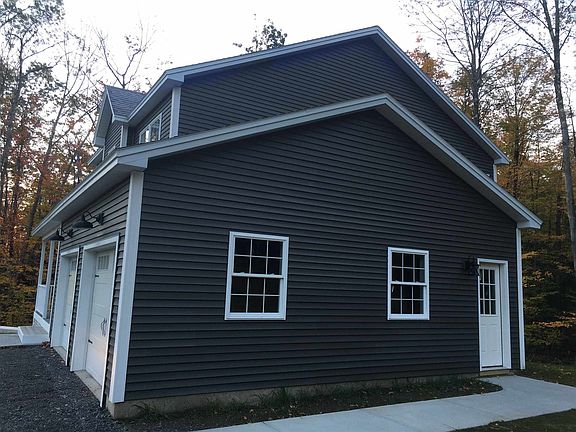 End of road location with the house backed up to the stream and woods. The construction has just started so you still have time to pick colors, flooring, cabinets, tops and lights within the allotted allowance. This lot has so much character with small open area, small stream, awesome exposed ledge and across the stream some low impact hiking terrain. There is a maple easement agreement that runs with the property. Please call for more details or for an appointment. Photo is "Likeness Only" Overhead doors will be on the front of the house not the side as pictured. Room sizes are approximate until framing is complete.