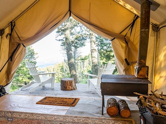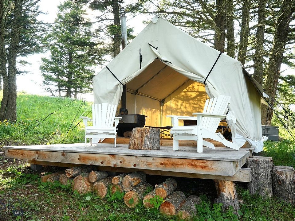 Escape to your own private wilderness on Battle Ridge. 20 pristine acres with seasonal spring and spanning views of the Bridgers, Crazy Mountains and the Absorkas. This turn key base camp includes: Montana Canvas tent with rainfly and wood stove, custom built wood platform and deck, camp stove, cots, indoor rug, bedside table, outdoor cooking area etc.. This completely off-the-grid sanctuary is the ultimate jumping off point for endless adventures and offers unparalleled serenity.