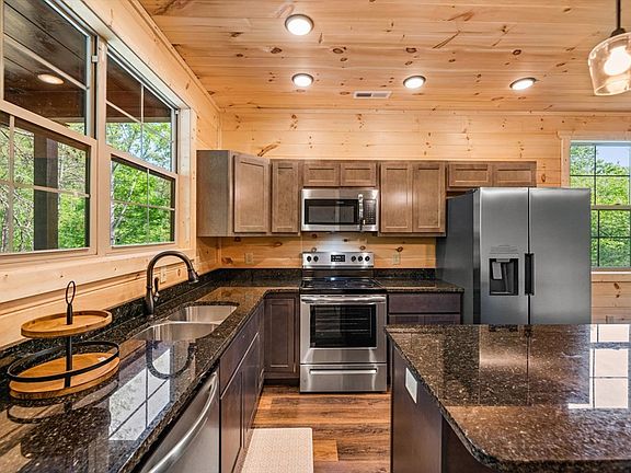 Under construction 3 bedroom/3 full bathroom/2 half bathroom cabin with loft, game room and movie room! Convenient, yet secluded, location with easy access to Pigeon Forge and Gatlinburg. This cabin boasts an open concept kitchen, dining, and living room with cathedral ceilings. Double doors lead to the covered deck where you can relax while taking in the wooded and seasonal mountain view. There is a large master suite and an additional half bathroom on the main level. Upstairs is a loft and two bedrooms with their own private bathrooms. On the lower level, there is a large game area and movie room with an additional half bathroom. **Finished and furnished photos are from similar cabin by same builder** Estimated to be completed February 2023. Drone photography used.