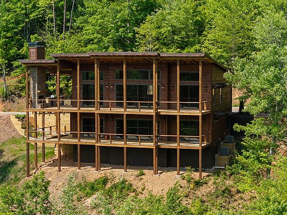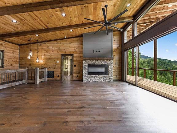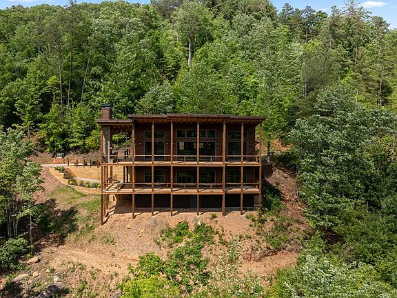 Spectacular SUNSET YEAR ROUND MOUNTAIN Views of National Forest! Listen to the sounds of Stanley Creek rushing through the valley in this 4br/3.5ba Impressive Mtn Modern Complete New Construction. No detail overlooked! Perfect mix of modern & rustic elements! Main floor covered entrance with rock accents, an open concept floor plan with great room, fireplace, and soaring cathedral ceilings boasting wall of windows with massive sliding glass doors, ample dining space, spacious kitchen with high end appliances and granite countertops, large island and custom cabinets, master suite with walk in closet/tile shower/double vanity, half bath, & true laundry room. Expansive windows all across the front to bring the views inside. Covered back porch spanning length of home w/exterior fireplace & outdoor kitchen. Lower level provides the perfect space to entertain w/game room/wet bar, 2 guest bedrooms and baths, walk in closets plus 2nd level of porches. Coveted location in gated community along the Benton Mackaye Trail nestled adjacent to the Rich Mountain Wilderness area with tons of outdoor recreation/hiking/mountain biking/fishing. Just minutes to Downtown Blue Ridge, Lake Blue Ridge, and the Toccoa River! Incredible opportunity to own a short term rental in Blue Ridge!!
