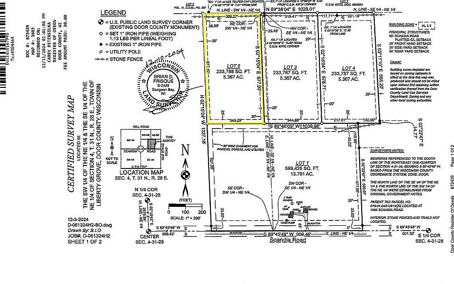 Create your perfect Door County retreat on this 5.367-acre wooded lot—an ideal canvas for your dream home or private getaway. A gravel drive is already in place, and a full survey has been completed, saving you time and effort. Enjoy the tranquility of a secluded setting while being just minutes from all the dining, shopping, and shorefront charm Sister Bay has to offer. Also offered are Lots 3 and 4, individually, under MLS #s 144395 and 144396. See MLS #144398 for all 3 Lots combined.