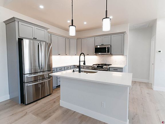 Ridgeline Homes' LaSalle model...a split floor plan with open concept living, dining and kitchen and 4 bedrooms, 2 baths plus a 3-car garage. Vaulted ceiling in living room and master bedroom, both with ceiling fans. Just one of 18 models that can be built in Woods Crossing by Ridgeline Homes. Construction to commence upon contract signing with completion approximately 90-120 days from contract signing. Semi-custom home allowing Buyer to choose from seller's selection of interior and exterior colors. All appliances included - gas or electric range/oven (buyer's choice), refrigerator, dishwasher, microwave plus washer and dryer. Standard features include stained maple cabinet with soft close doors and drawers, granite or quartz countertops, wood laminate flooring throughout with tile flooring in baths, 9ft ceiling, forced air gas heat and central A/C. One Year Builder's Warranty. SELLER WILL CREDIT BUYER $11,000 TOWARDS BUYER CLOSING COSTS AND/OR INTEREST RATE BUY DOWN IF BUYER CLOSES USING ONE OF SELLER'S PREFERRED LENDERS. Model home available for buyer to see finish level and color choices. Prices of other models start at $459,000. (Photos are of a previously built LaSalle model with various upgrades including gas fireplace, painted cabinets, tiled backspash, tiled master shower with shower door and exterior shakes added at an additional cost. Measurements are approximate.)
