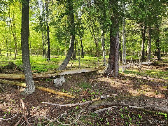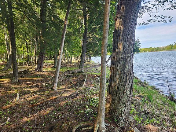 Aesthetics are golden on Golden Lake which is located between Iron River and Watersmeet, in Michigan's Upper Peninsula. This wooded 5.24 acre surveyed parcel has power and phone on site and is ready for development. Gently sloping starting with Maples and mixed hardwoods and gradually adding Hemlocks closer to the waters edge. The 260.83 feet of shoreline is rock, sand and some light vegetation from non-use., otherwise hard bottom. Facing East, early birds will catch the morning sunrises. Could be ideal for an exposed walk out foundation. Golden Lake is full recreational, is approximately 285 acres and up to 100' deep, known for Walleye and Trout among smaller species. Excellent wooded building site with neighboring elbow room. Common sense Covenants in place for the enjoyment of all.