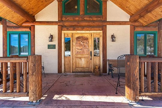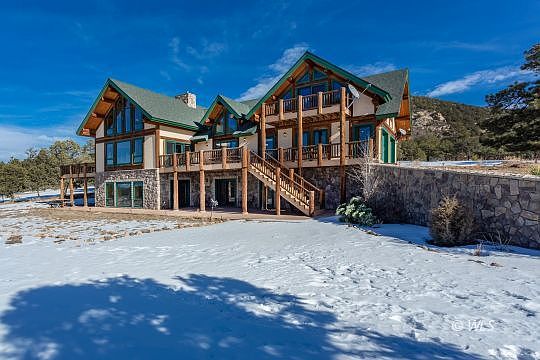 As you approach this gorgeous property, you will be taken aback by the grandeur of the scenery and the welcoming presence of this log, stone and stucco-faced home. This luxurious, 3-story masterpiece is perfectly situated on 35+ acres of gently sloping land in the Wet Mountain Valley of Westcliffe. The home was designed for comfort, entertaining and privacy and no detail was overlooked in its layout or craftsmanship. You'll enjoy the large open living areas as well as the intimate spaces nestled within. As part of this feature-rich home, a grand floor-to-ceiling fireplace and soaring two-story bank of windows bookend the great room and perfectly frame the majestic alpine views. You will be captivated by the views across the valley to the splendor of the Sangre de Cristo Mountains. Home offers a modern kitchen with granite counters and stainless Bosch appliances, 4 beds, 4 baths, a library, office, media and game rooms, 3 decks upstairs, walk-out patios, and a two-car attached garage, with radiant heat throughout. Also included is a 1 bed, 1 bath, 2-story guest house complete with a large workshop and 2 garage bays. Lower level could easily be turned into barn space for your horses.