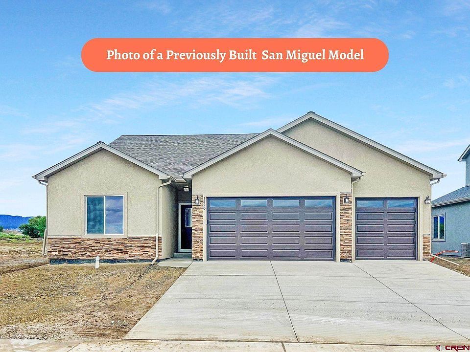 The San Miguel 3-Car Garage - 1 of 13 models Ridgeline Homes can build you in Woods Crossing on selected lots in Blocks 7 & 8! Lots on South side of Kestrel Loop (Block 8) are adjacent to greenbelt and have wonderful San Juan and surrounding mountain views. Buyer can choose cabinet color, flooring, tile, exterior siding and stone from a selection available from Builder. Standard features include all appliances – stainless in kitchen…buyers choice of gas or electric range/oven, refrigerator, dishwasher and microwave, and washer and dryer. Maple stained soft close doors and drawers with 36†wall cabinets in kitchen and 30†wall cabinets in laundry (when applicable), granite countertops in kitchen, baths and laundry (if countertop in laundry). Durable laminate flooring throughout with tile flooring in baths. 9ft ceilings throughout, vaulted ceiling in living room and master bedroom. Hand troweled drywall texture, bullnose corners. Your choice of oil rubbed bronze or nickel electric and plumbing fixtures, lever door handles, contemporary cabinet pulls and knobs and kitchen faucet. Comfort height vanities. Bright LED lighting. Standard pre-finished lap siding (can be upgraded to stucco), accented by manufactured stone on front elevation. 30-year architectural shingles, seemless gutters with foldable extensions. Unfinished garage with 8 insulated steel garage door with openers and keypad entry. Vinyl windows, select models with rough-cut and stained beams. Built on crawlspace with engineered foundation, R-19 insulation in the walls, R-38 insulation in attic, insulated garage walls, 95% minimum high efficiency gas furnace, 95% minimum high efficiency water heater, 50-gallon hot water heater. Each home professionally managed throughout the entire building process to ensure quality. 1-year structural warranty. Select upgrades can be added. Construction time approximately 3-4 months. SELLER WILL ALSO CREDIT $7000 TOWARDS BUYER CLOSING COSTS AND/OR INTEREST RATE BUY DOWN IF BUYER CLOSES USING ONE OF SELLER'S PREFERRED LENDERS, ACADEMY MORTGAGE MONTROSE, SYNERGY ONE LENDING MONTROSE OR GENEVA FINANCIAL MONTROSE. Make a Ridgeline Home your next home!