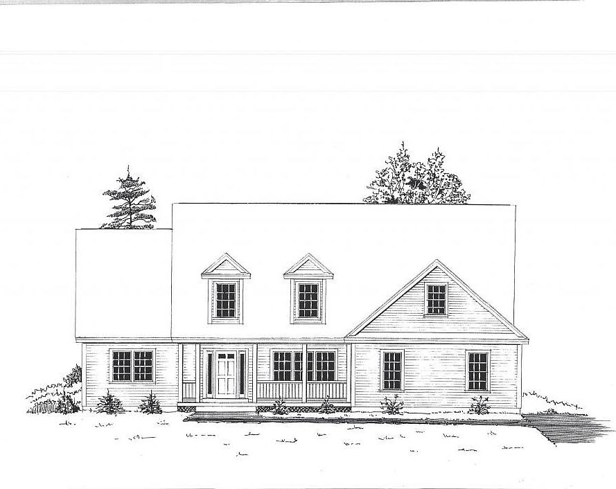 Custom built cape home to be built by Cherry Hill Homes. 2,400 sf step back cape with 2 car attached garage, 3 bedrooms, 2 1/2 baths, soaking tub, tile shower, 12x12 deck, central air conditioning with FHA heat by propane, brick wood burning fireplace, hardwood and tile on entire first floor and second floor hallway, oak staircase, 9’ ceiling height on first floor, Anderson 400 windows, designer kitchen daylight windows in basement, well and septic, underground electric paved driveway. First floor master suite Mudroom with axillary entry. Views. Buyer paying current use on land.