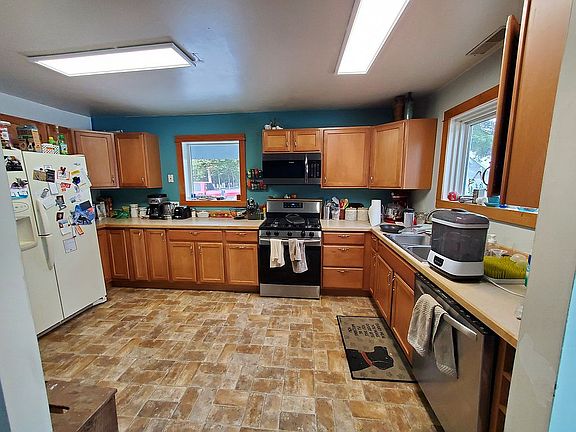 3 bedroom 1 bath home with attached heated 1 car garage. Detached heated 1,200 sqft shop with loft and unfinished bathroom. Forced air, wood stove and toyo for heat. New furnace installed August 2021. Range, washer, micro hood and dishwasher are less than three years old. New life proof flooring in living room, mud room and upstairs nook. Attached garage has new garage door and opener installed in the last year. House has well and septic. Large fenced in yard. Roads are maintained year round by HOA. No HOA dues or property tax.