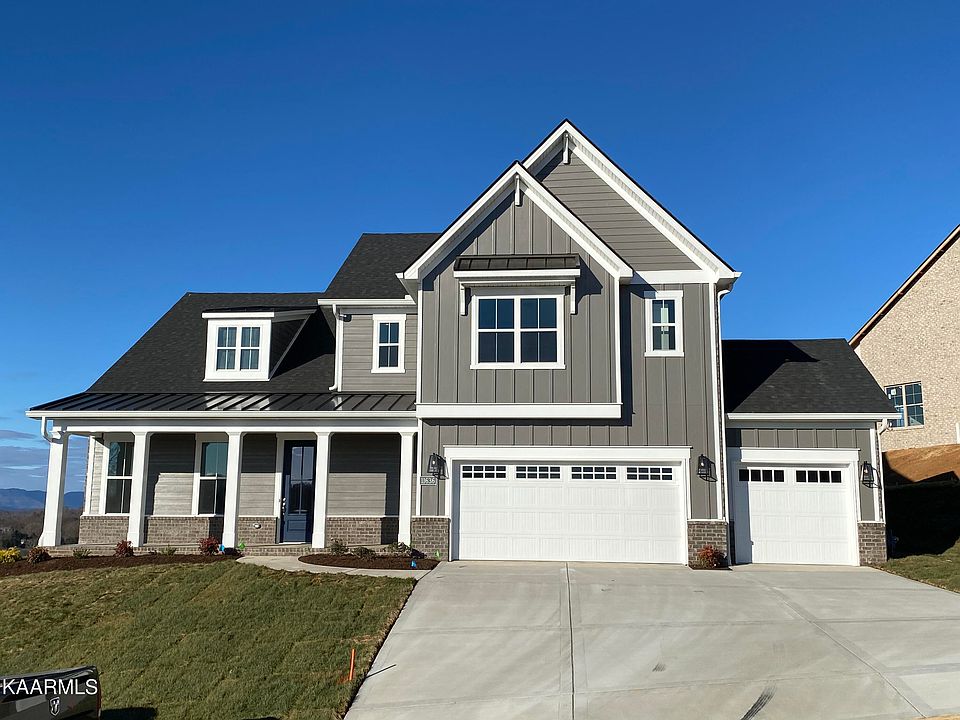 FARMHOUSE MASTER ON THE MAIN, 2ND BEDROOM AND FULL BATH ON THE MAIN FLOOR AND 3RD BAY GARAGE!! The farmhouse Livingston plan is one Saddlebrook's most requested floor plans. With it's large front porch and metal roof accents it has the farmhouse look everyone seems to love. Enter the 8 foot glass entry door and you will find a bedroom with a full bathroom just perfect for the out of town guest. Enter the great room and you will be greeted by a lovely coffered ceiling and a warm cozy fireplace with large windows to let in plenty of natural light. The kitchen and causal dining area are open to the great room. The kitchen has a large chefs island with stainless steel gas range, microwave, dishwasher and vent hood. The kitchen has beautiful granite counter tops, painted cabinets, tile backsplash, LED under cabinet lighting, custom Silgranite sink and large pantry. The casual dining area has large windows to let in natural light and overlooks the backyard. Just off the casual dining area you will find the 19 foot 8 inch covered rear porch. Just perfect for your morning coffee. The generous size main level master suite has a trey ceiling and large windows overlooking the rear yard. The master bathroom has a full tile shower, large soaking tub, double bowl vanity with quartz countertop and a very large walk in closet with solid shelving, chrome rods and a door that leads to the large laundry room with a utility sink. Travel up the oak tread staircase and you will find a very large bonus room that will make a great home office, play room, media room or study room. Just off the bonus room you will find a spacious walk in storage area. Upstairs you will also find two large bedrooms both with walk in closets and a full bath with a double bowl vanity and a private toilet and shower area is located upstairs as well. All of this in a beautiful Hardin Valley community with a community pool, play ground and pavilion.