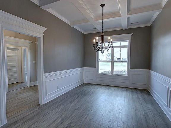 All brick High Point A is an open plan with 3 car side entry Garage and is backed by a 2-10 home warranty.. Home has 4 bedrooms, 3 baths and a sunroom. Home has wood plus flooring (Mohawk Revwood) in all living areas and bedrooms. Great Room features 12' ceiling, extensive trim, gas-log fireplace with upgraded fireplace treatment, wood plus flooring, floor outlet, recessed lights and ceiling fan. Dining room has 10' coffered ceiling, wood plus flooring and extensive trim including shadow box under chair rail. Open Kitchen includes 12' ceiling, custom cabinetry with granite countertops, large island with extra storage and countertop seating, stainless appliances (Gas Cooktop, Wall Oven, Wall Microwave, Dishwasher), under cabient lights, tile backsplash, wood plus flooring, recessed lighting, large walk-in pantry and drop zone bench.. Breakfast has 12' ceiling, wood plus flooring and extensive trim. Master bedroom has a 11' double tray ceiling, wood plus flooring, recessed lighting, extensive trim, ceiling fan and large walk-in closet. Master bath has 11' ceilings, glamour tub, large tile shower with two shower heads and rimless door, separate toilet area and double vanity with granite. Large sunroom has vaulted ceiling, tile or wood plus floor and ceiling fan. Additional bedrooms have 9' ceiling, wood plus flooring, crown molding and ceiling fans. The additional baths have 9' ceilings, tile flooring and granite countertops. Laundry has 9' ceiling, custom cabinets and tile floo