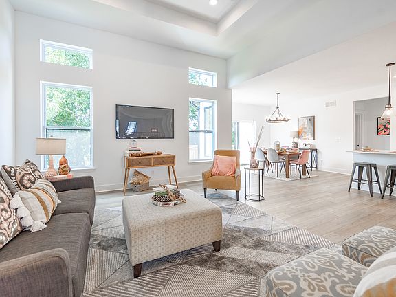 Proposed new construction. The Bettendorf is the open floor plan with a split bedroom layout for the homeowner who wants something uniquely chic. The foyer opens up to a tremendous great room and dining room accentuated by impressive 13' tray ceilings. The kitchen overlooks the entire area over an angled island with breakfast bar reminiscent of a chic metropolitan penthouse. This luxurious kitchen also includes granite countertops, and 42" dovetail cabinetry with soft close drawers and crown molding. For optimum privacy the two guest bedrooms are split from the master suite and bathroom which offer all indulgence that you could want. Homes built with smart home technology from Honeywell, Schlage, and Lutron. Pictures of previously built homes, some with upgrades.