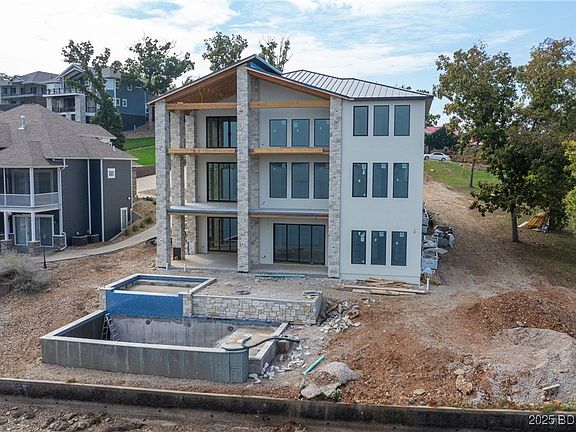 The nicest home in the most upscale subdivision at the LOZ! This ~10,000SqFt masterpiece will be completed 12/1/25 & leave you in awe. Centrally located on the 21MM near Redhead, Shorty Pants, & PBC, this no wake, cove located gem offers constant boat watching for Lake enthusiasts. In totality, the property presents 6 bedrooms(each are ensuites), 7 full baths, 2 half baths, a 2 tiered salt water gunite pool, massive new 2 well boat dock(16x50 & 12x34 ft slips), elevator, floating staircase, & gentle lakefront lot. The exterior consists of stucco, NewTechWood, & native Kansas limstesone & marble quality limestone. The main level offers 2 ensuites, the kitchen, living, dining, & laundry rooms, & 10 ft collapsible sliding doors. Venture upstairs for 3 ensuites, bar, & a half bathroom. The lower level has a living area, golf simulator room, wine room, lakeside ensuite, storage, & walks out to the pool. Upgrades include Sonos wired speakers throughout, 4 car heated/cooled garage(fit 8 w/ lifts), each level has stamped concrete patios, Viking appliances, Quaker aluminum windows, Dru electric fireplaces, & was designed by ML Designs(KC's top interior designer 2022-24). Check it out today!