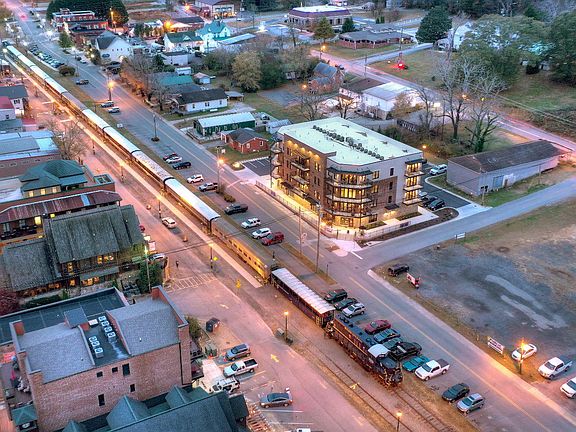 Experience Loft-Living in the quaint setting of downtown Blue Ridge, Georgia. Beckoning to an earlier time, Blue Ridge Station's reclaimed brick warehouse-like appearance pays tribute to the historical sense of downtown Blue Ridge. Alongside the Scenic Railway, Blue Ridge Station offers comfort living & no maintenance with ultra quiet interior and phenomenal downtown and mountain views from large private balconies...shopping, restaurants, and galleries only a few steps from your front door, ultra energy efficient, only the best in graphite stainless appliances, custom cabinetry with soft close features, tile backsplashes, and granite counters, spa like baths, three spacious bedrooms with mix of drywall & wood, open kitchen, living, dining concept, foyer & plentiful closets and storage, no steps access with elevator, private parking lot, 24 hour security services, green space and sidewalks, two covered private parking areas plus guest parking...a view like no other of historic downtown Blue Ridge and scenic railroad from large, private balcony...rare opportunity!
