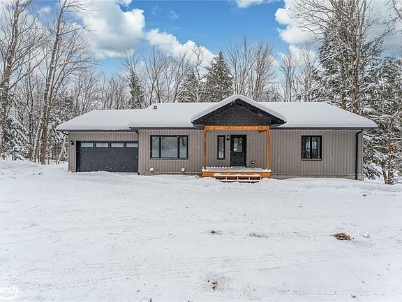 Welcome to The Novar. Set on a picturesque 1.35 acre lot surrounded by mature trees in a new and upcoming executive Haliburton neighbourhood, this custom designed 1342 square foot 2 bedroom and 2 bathroom Guildcrest bungalow features high end finishes throughout and is sure to check off every item on your wish list! The sunny, open concept living space was made for entertaining with engineered hardwood flooring throughout the main level, a built-in propane fireplace in the living room and sliding doors to the private back deck off the dining room. The bright, spacious kitchen offers a timeless but modern design with white cabinetry, quartz countertops, an oversized dark grey island with extra seating and s/s chimney range hood. Completing the main floor are the laundry and mud room with access to the double attached garage, a 4-piece guest bathroom and an incredible primary suite with walk-in closet and a gorgeous bathroom with glass enclosed, tiled shower. The full walkout basement has been insulated and plumbing roughed-in for a third bathroom, and has great potential for an in-law suite. With a superb location just minutes to the village of Haliburton, you get the privacy and picturesque setting you want with the convenience of in town living. This home is the ultimate low maintenance package with high-end finishes throughout, vinyl siding, new septic, new drilled well, propane forced air furnace and both Tarion warranty and Guildcrest homes 10 year factory warranty - you can just move in and enjoy Haliburton living!