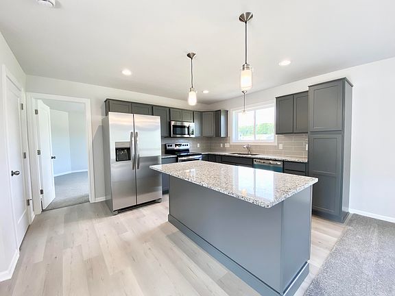 Here's your chance to own one of Sable Homes' award-winning Bayberry Ranch homes on a beautiful 1 acre lot! The home has a full kitchen appliance package; dishwasher, range, microwave and refrigerator - all stainless steel! 3 bedrooms, master has private bath walk-in closet, double sinks, dining room with arches and 9 foot ceilings, main floor laundry, fully finished family room in lower level, room for 2 more bedrooms & bath in the future. A 2 stall attached garage with a bump-out for extra storage. And yes, the price includes the lot. Enjoy a brand new home!