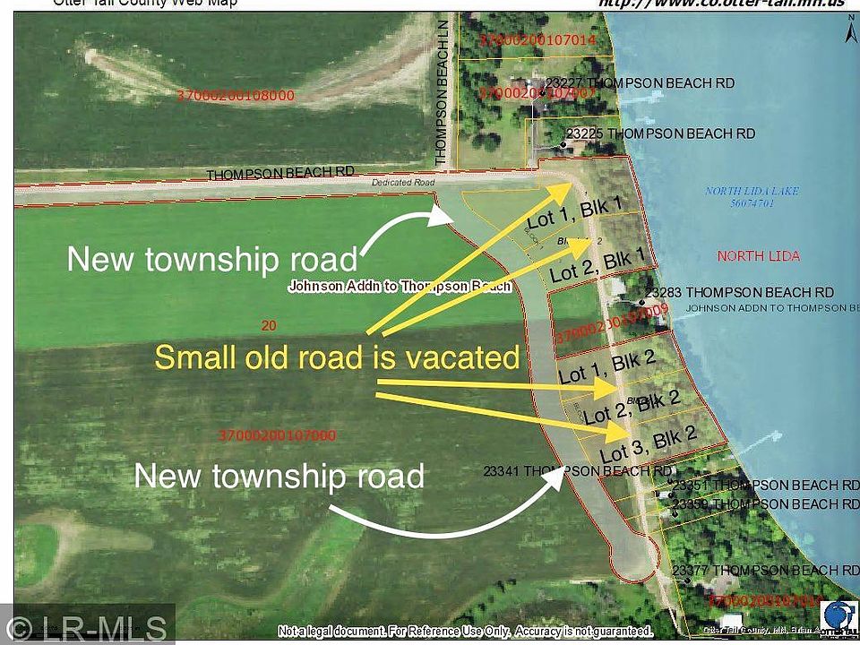 LAKE LIDA - NEW DEVELOPMENT - Bring your camper, build a storage shed, or build your dream home here! This lot is 3/4 of an acre and has room for your home plus a storage building large enough to hold all your lake toys! Fantastic swimming on 100' frontage with excellent hard bottom sand lakeshore. No covenants. A new township road is built, and the old gravel road shown on aerial views and photos has been vacated and may be removed by the purchaser. This lot has 0.29 acres of buildable area behind the bluff zone which would have a beautiful view over Lake Lida. Mature trees welcome you to the wide shelf next to the lake and the beautiful lake frontage. Stairway has been built between Lots 2 and 3, Blk 2. This listing is Lot 3, Blk 2.
