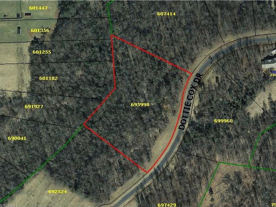 Wooded Lot, conveniently located, country living, Dottie Cox Drive dead ends into a Cul-de-sac, which means very little traffic. Mailing address Pleasant Garden, NC. New Restriction Covenants Apply: "ground floor area of the main structure of said dwelling, are to be in the area of 1,500 sq. ft". Randolph County Improvement Permit for 4 bedroom home which has expired, needs to be renewed.