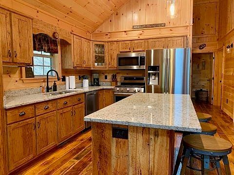 New PRE-SOLD Construction, in an upscale cabin community of Cherokee Oaks. High Speed Fiber Optic Internet! 2/2 Cabin. Rock gas Log fireplace. Wood walls, ceilings, floors w/saw cut marks on the floors, granite counters, SS appliances, beams in ceilings, full front covered porch. Hand-hewn D-Log siding, metal roof. Full duct A/C & Heat pump. JUST 4 miles from Downtown Murphy and close to Lake Hiwassee with boat ramp and 189 miles of shoreline. ONLY two lots left!!!! (Base price of home may increase due to increase material cost)