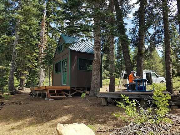 Here it is, the one you've been waiting for! This one has it all! Extraordinary, well appointed, and meticulously cared for 10x12 CABIN with panoramic view located on 5 acres in Big Prather Meadow Private Preserve. First level main living area features a kitchenette with sink, under counter refrigerator and water heater, 3 burner stove with oven, two Humphrey propane wall mount lights and a third in the second story bunk/sleeping loft. Recently renovated with new deck for outdoor dining, entertaining, and relaxing. Complete with new windows, an outdoor shower, and a front porch with striking and majestic views as far as the eye can see. Turn-key condition and ready to occupy complete with dining table and benches, Weber kettle BBQ and kitchenware included. You will enjoy luxuries such as your own private well with a generator, water storage tank in loft serving kitchen sink and shower, propane, a septic tank with RV/travel trailer dump connection. All in the great outdoors where even one of the best seats in the (out)house has sweeping views framing the high sierras. If you revel in the great outdoors, this is one of the finest options available in Big Prather Meadow. Worth the wait- but wait no longer, it won't last long! Big Prather Meadow Private Reserve is a subdivision located at 7,200 feet in elevation in Tuolumne County and accessible through Calaveras County approximately 17 miles from the small town of Dorrington on the Highway 4 Corridor. This high country acreage located in the Stanislaus National Forest is off-the-grid recreational property with 100 parcels - all with 5 acre minimums and perfect for nature lovers wanting privacy and seclusion. Get away from it all in your very own one-of-a-kind experience in this fenced and gated community. Truly extraordinary.