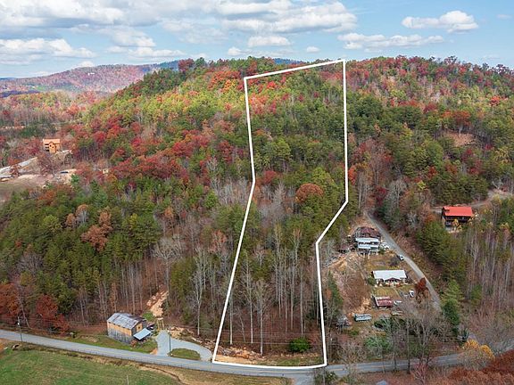 Spectacular mountain views from this beautiful 5.04 acre lot with over a 100 feet of road frontage on Happy Hollow Road. Several building site choices. Owners said their chosen building site has an over 200 degree mountain view and utility boxes in place! You may consider building near front of property with all the road frontage on Happy Hollow. You will notice the quiet and seclusion as you drive on the paved private road to the back and top of this property. As you get near the top, the private road meanders thru part of the acreage. Signs on property. The drone photography used in this listing is not indicative of view.
