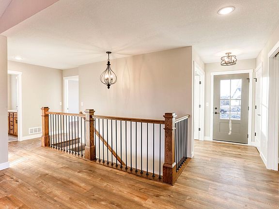 Gas fireplaceInsulated garage doorsFarmhouse sinkQuartz countertopsAccessible apple river frontageKitchen pantryDecorative railing