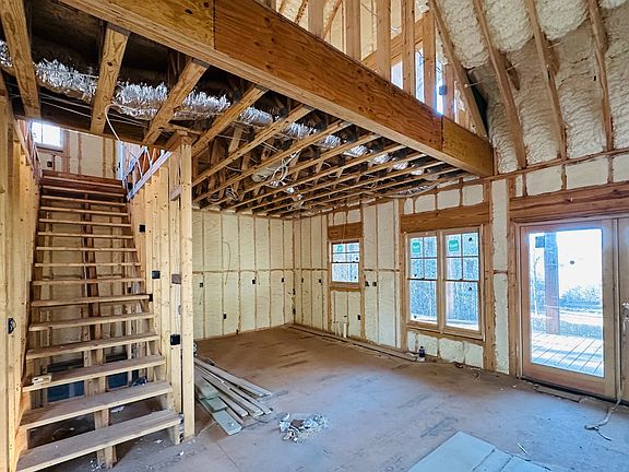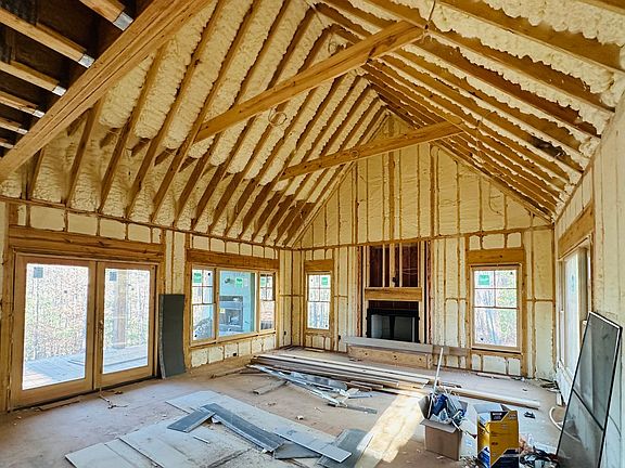 Adorable new construction craftsman style cabin nestled on level wooded level lot with beautiful mountain views. This 3 bedroom 2 1/2 bath cabins features master and laundry on main. Open kitchen/ living area and half bath for guests . Large covered party porch with fireplace . Second level has two more bedrooms with shared bath in between . Enjoy the quiet sounds of nature and sunsets from the second level covered porch off upstairs bedroom. Interior finishes will be the perfect mix of rustic and modern; granite counter tops , white ship lap walls, accent walls ,wood trim, wood ceilings, timber beams in ceiling with up-lighting, stainless steel appliances and matte black fixtures. Exterior of home is a mix of poplar wood siding, stone and hardy board and batten, for easy low maintenance. Just a short 10 minute drive to shopping and dining in downtown Blue Ridge . Approximate completion date end of February 2024. Photos to be updated as construction progresses .