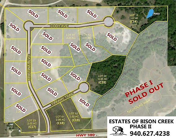 Welcome to The Estates of Bison Creek Phase II! Come build your dream home in one of the newest and most exciting developments in Decatur. Situated between 2 lush forested creeks, underdeveloped countryside with lots from 2-4.3 acres. Well-lighted and country maintained asphalt roads throughout. All homes custom designed and built by the innovated Texas architect and interior design team at Bison Creek to make your dreams come true. Easy access to Decatur, Denton, Ft Worth and DFW airport. A truly unique development in this area. Deed restrictions with 1,900 sq ft minimum living area and FFA, 4H animals allowed. Decatur ISD, No HOA, No City Taxes.