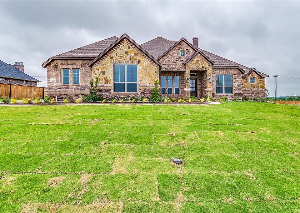 Secure this Silver Leaf home mid construction. 2840 sq. ft., 4 bedroom & 3 bathroom masterpiece is tucked into the conveniently located University Hills in Weatherford right off of Ric Williamson. This home will be gorgeously updated with the following: stainless steel appliances, island wrapped with cabinets, added cabinet hardware, upgraded electrical fixtures, floor to ceiling stone fireplace, hardwood floors in entry-living room-hallways, upgraded bathroom tile, outdoor stone fireplace, upgraded plumbing fixtures, painted beams in foyer, tray ceiling & painted beams in family room, and coffered ceiling in study. Don't miss your shot at this home before complete. Pics floor plan but not finishes & colors.