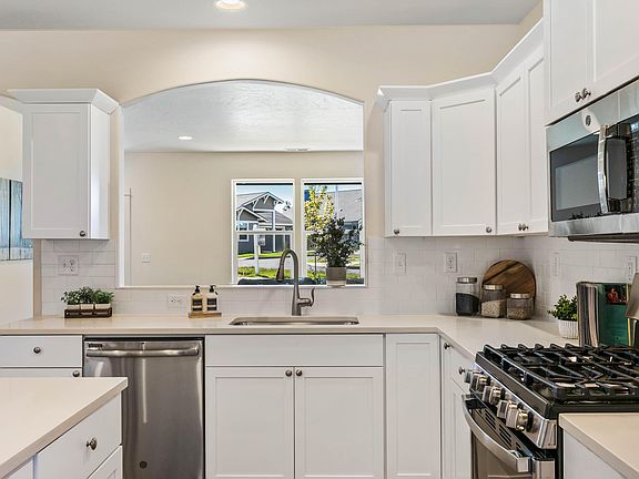 Our newest community, Crossings at Metolius, in SW Redmond offering the Jackson floor plan with our 3-car garage option included! This single level home includes an incredible open kitchen that provides ample storage space with an island, large pantry and built in desk space. The living room with corner fireplace and the perfect amount of natural light coming through the front windows really complete the space of this well-rounded home. The master bedroom is located privately in the back of the home and includes 2 closets along with a tiled shower in the bathroom and dual vanities. A covered patio off of the dining room is the perfect size for your outdoor living space! A fully fenced yard is included! Personalize your interior finishes for this home today! Estimated completion April/May 2021