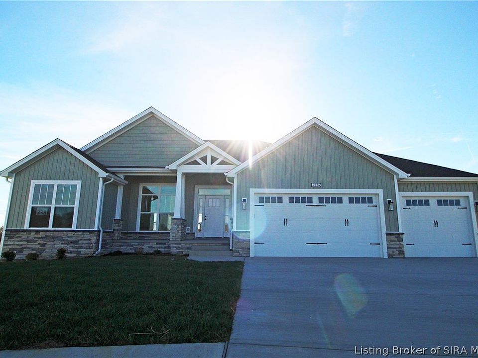 Pictures updated as of 10/6. This is a CUSTOM home! Premier Homes of Southern Indiana is proud to present the beautiful 'Haylyn' floor plan! This gorgeous 4 Bed/3 Bath home features a cozy front porch, foyer, spacious great room with 10' vaulted ceiling, open floor plan, and 1st floor laundry room with pocket door. Beautiful eat-in kitchen with stainless steel appliances, granite countertops, breakfast bar and kitchen island, pantry closet, and roomy breakfast nook that walks out to back sun deck, which is perfect for relaxing or entertaining! Primary Bedroom offers elegant trey ceiling, spacious walk-in closet, and private bath with double vanity and large walk-in tile shower. The finished walkout basement includes a family room, 4th bedroom, and 3rd full bathroom with plenty of unfinished space for storage. This home also includes a 2 car attached garage with keyless entry and a 2-10 home warranty!
