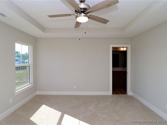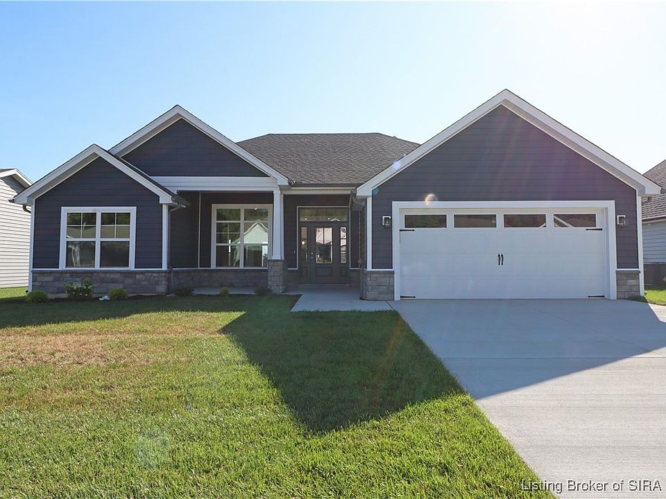 Premier Homes of Southern Indiana presents the beautiful 'Haylyn' floor plan! This 3 Bed/2 Bath home features a covered front porch, a spacious great room with 10' ceiling, open floor plan, split bedrooms, and laundry room with a pocket door. The eat-in kitchen features a vaulted ceiling, stainless steel appliances, granite countertops, island, walk-in pantry, raised breakfast bar, and roomy breakfast nook w/sliding door that leads out to the covered patio! Primary suite offers an elegant trey ceiling and en-suite bath with pocket door, double vanity, built-in linen tower, water closet, large walk-in shower, and spacious walk-in closet. This home also includes a 2 car attached garage w/keyless entry & a RWC home warranty! Save $$$ toward closing costs by using one of our recommended lenders! Builder is a licensed real estate agent in the state of Indiana.