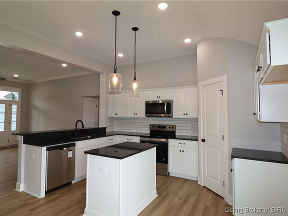 Premier Homes of Southern Indiana presents the spacious 'Haylyn' floor plan! This 3 Bed/2 Bath home features a covered front porch, a spacious great room with 10' ceiling, open floor plan, split bedrooms, and laundry room with a pocket door. The eat-in kitchen features a vaulted ceiling, stainless steel appliances, granite countertops, island, walk-in pantry, raised breakfast bar, and roomy breakfast nook w/sliding door that leads out to the sun patio! Primary suite offers an elegant trey ceiling and en-suite bath with pocket door, double vanity, built-in linen tower, water closet, large walk-in shower, and spacious walk-in closet. This home also includes a 2 car attached garage w/keyless entry & a 2-10 home warranty! Save $$$ toward closing costs by using one of our recommended lenders! Builder is a licensed real estate agent in the state of Indiana.