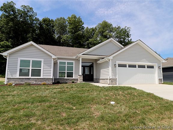 Pictures updated as of 7/8. Premier Homes of Southern Indiana presents the beautiful 'Haylyn' floor plan! This 3 Bed/2 Bath home features a covered front porch, a spacious great room with 10' ceiling, open floor plan, split bedrooms, and laundry room with a pocket door. The eat-in kitchen features a vaulted ceiling, stainless steel appliances, granite countertops, island, walk-in pantry, raised breakfast bar, and roomy breakfast nook w/sliding door that leads out to the patio! Primary suite offers an elegant trey ceiling and en-suite bath with pocket door, double vanity, built-in linen tower, water closet, large walk-in shower, and spacious walk-in closet. This home also includes a 2 car attached garage w/keyless entry & a 2-10 home warranty! Save $$$ toward closing costs by using one of our recommended lenders! Builder is a licensed real estate agent in the state of Indiana.