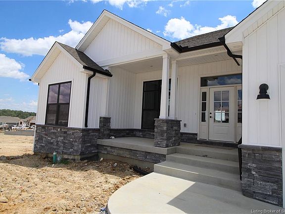 Pictures updated as of 7/13. This is a CUSTOM HOME! Premier Homes of Southern Indiana is proud to present the beautiful 'Haylyn' floor plan! This gorgeous 4 Bed/3 Bath home features a covered front porch, spacious great room with 10' ceilings, open floor plan, 1st floor laundry room, and engineered hardwood floors. The beautiful eat-in kitchen includes stainless steel appliances, granite countertops, large kitchen island, walk-in pantry, and roomy breakfast nook that walks out to the back deck! The Primary Suite offers elegant trey ceiling, spacious walk-in closet, and private bath with double vanity, linen cabinet, and large walk-in tile shower. The Full, finished walkout basement features a large 4th bedroom, full bathroom, huge family room that walks out to back patio, and unfinished storage areas. This home also includes a 3-car attached garage with keyless entry and a 2-10 home warranty! Builder is a licensed real estate agent in the state of Indiana.