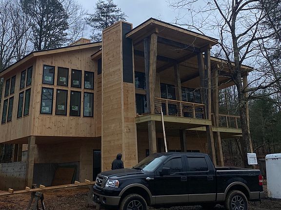 Check out this sleek, modern, mid-century, industrial-yet-rustic new construction chalet only minutes to Downtown Blue Ridge in the highly sought after Mountain Tops community! Complete with bold statement stains, sleek siding, dual sided F/P in the main level leading the living room into additional "speak easy bourbon room" overlooking lush forestry and long range mountain views, an open concept living room and kitchen with large glass sliding doors leading out to the perfect party porch, polished concrete walls/accents, bold black accent walls, cement grey tile bathrooms, large floating kitchen shelves complemented by marble backsplash counter to ceiling tile, no stone will be left unturned on this cabin! Let the outdoors in with floor to ceiling glass, bold accents, gorgeous complimentary hardware, statement pieces throughout. ^^ THIS IS MODERN MOUNTAIN LIVING ^^