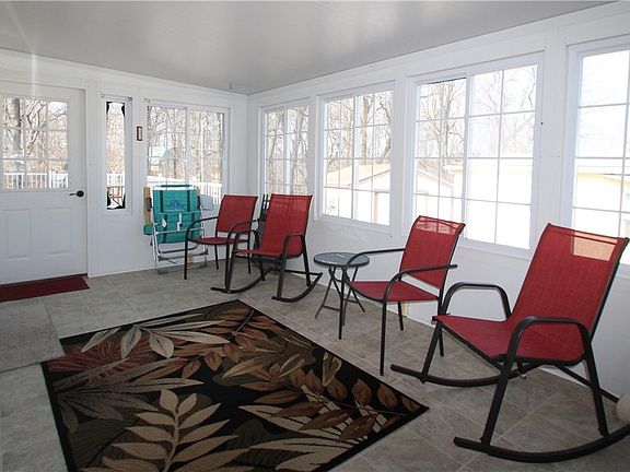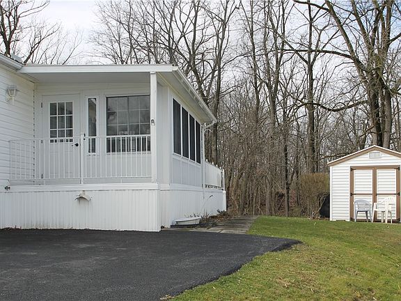 Rare opportunity to have affordable lake living. This one level home is 1568 SF with 3 bedrooms, 2 full baths, huge living room, formal dining room and an eat in kitchen perfect for entertaining. There is no shortage of cabinet space or closet space. Enjoy the enclosed porch or deck (with awning) to have your view of beautiful Conesus Lake and its amazing sunsets. Recent updates include a metal roof, central air, hot water tank, gutters with covers, new driveway, some appliances and landscape. Included is shared 185' of lake frontage with a dock, swim area, private boat launch, and an area to launch kayaks. Buyers must be approved by the park and one small dog and cat allowed with approval as well. $620 per month includes water, sewer, common area maintenance, garbage and taxes. You can even sign up to be on the list for your own boat slip as they become available.