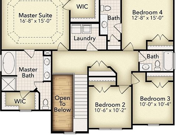The second floor has all the bedrooms along with the laundry room. The master suite has two walk-in closets, so no need to share! The master bath has a double vanity with marble, walk-in shower and a garden tub. The two other rooms share a bathroom. There is also a guest suite with its own bathroom and walk-in closet. The Hawk comes equipped with a Total Connect Honeywell Security System from Holmes Electric plus many more standard features.