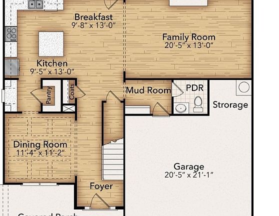 The Clarksville Plan, built by Kidd Construction. With both an open floor plan and functional spaces, the Clarksville has everything. From the gorgeous two-story foyer to the open kitchen with island, there is plenty of room to enjoy time with family and friends. The formal dining room is connected to the kitchen by a built in desk area with granite countertops. The kitchen comes standard with stainless-steel appliances, ceramic backsplashes, and granite countertops.