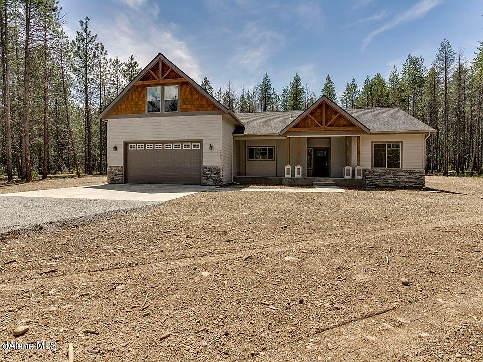 Spacious open floor plan master is separate from other bedrooms. Amazing large kitchen with huge walkin pantry. Granite counters, oversize kitchen Island with eating bar. Vaulted Great Room, covered front an back porches. Master suite has huge walkin closet, large tiled shower, plus tub, double sinks. Oversized 3 car garage. Nice large bonus room over the garage for office, media or hobby room. Treed 5 acres for privacy and room for shop. This home is a to be built and projected completion time from start to finish is 8 months. Pictures represent simular home built.